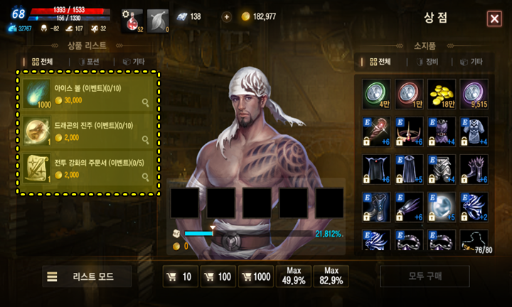 참고로 아이스볼은 기란마을 이벤트 상점에서 구매가 가능합니다. 그리고 드래곤의 진주와 전투 강화의 주문서로 매우 저렴하게 구입이 가능하니깐 본캐 부캐 모두 구입해서 빠르게 사냥하는게 좋아보입니다.