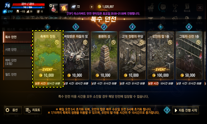 축복의 정원 이벤트 (7월 10일 점검 전까지)