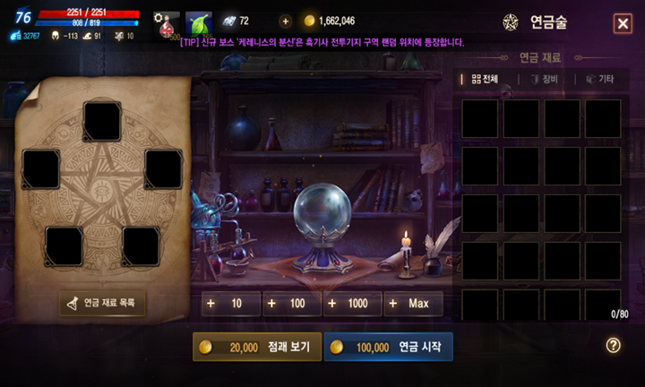 역시나 무과금이라 고대 연금의 비법은 시도하지 않았습니다. 앞으로도 할 일은 없어보이네요 ㅠㅠ