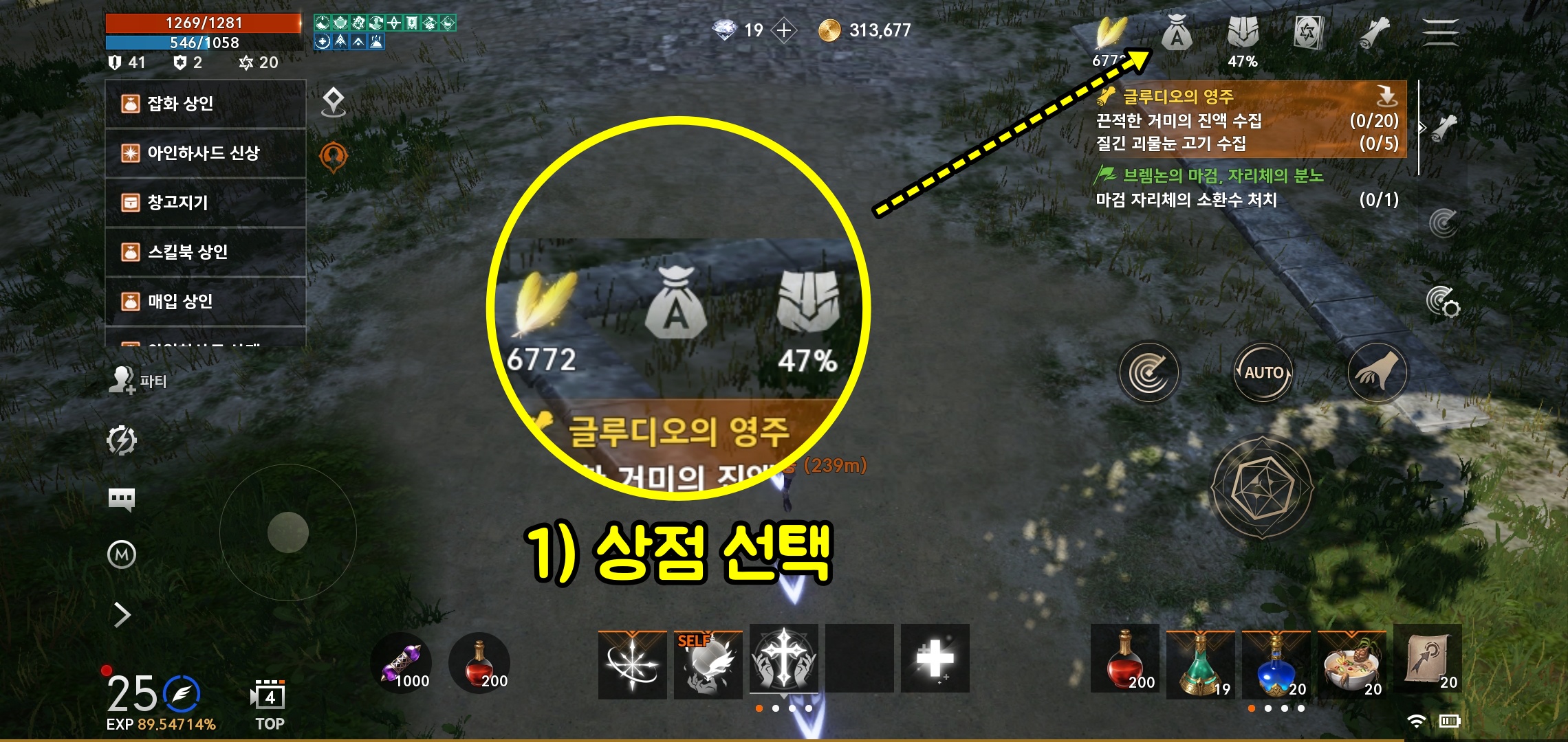리니지2M 게임상의 우측 상단에 위치한 상점 아이콘을 선택합니다.