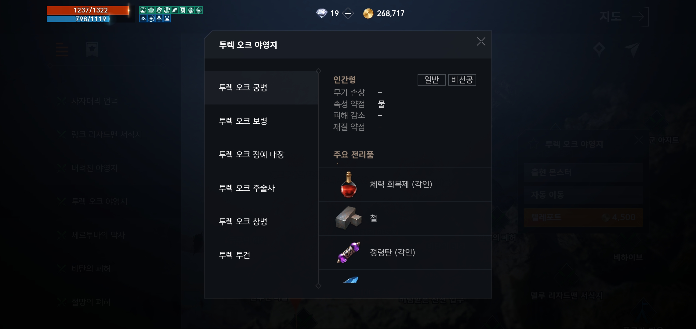 투렉 오크 야영지의 몬스터중에서 투렉 투견을 제외한 모든 몬스터들이 "철" 재료를 드랍합니다. 몬스터들도 그렇게 강하지 않아서 오랜시간 잠수 사냥이 가능하다는 장점이 있으며 철 드랍률도 괜찮아서 빠른시간안에 재료 획득이 가능합니다.