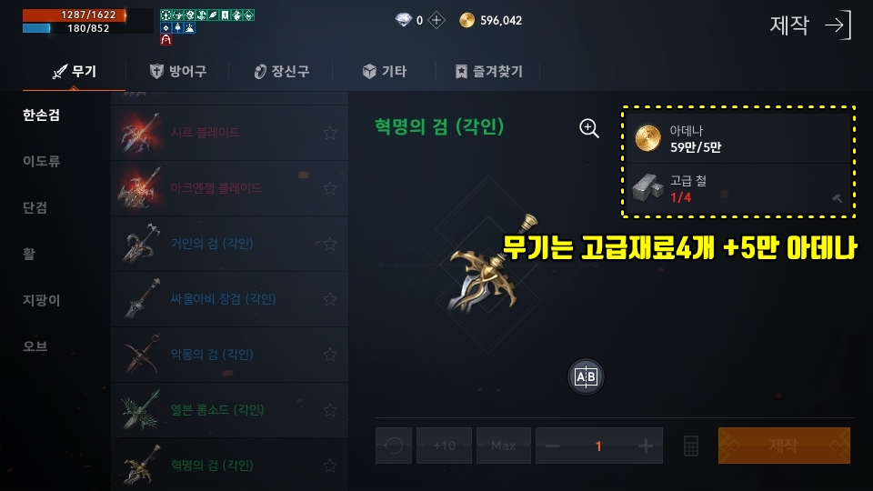 제작으로도 만들수 있지만 고급재료나 아데나가 (골드)가 아까우니 최대한 신탁 퀘스트의 보상으로 무기를 노리면서 플레이하다가 정 안나오면 제작하는 방법이 있습니다. 보통 3~4번 시도하면 클래스에 맞는 무기를 보상으로 받더라구요.