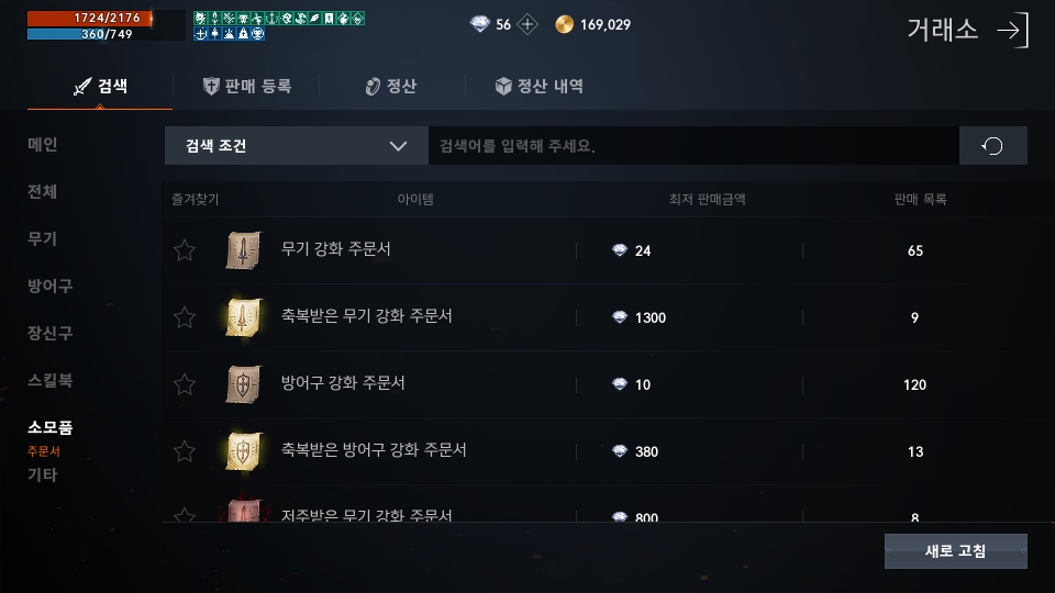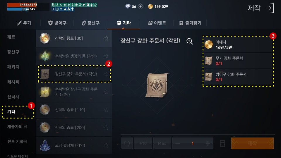 장신구 강화 주문서를 그냥 구매하는게 더 낫지 않냐? 이런 질문이 있을수 있겠지만 거래소를 한번만 보시면..."아 이래서 제작하는구나" 하는 답이 나옵니다. 거래소의 장신구 강화 주문서 가격은 100다이야 이상으로 거래됩니다. 매물도 별로 없구요. 제작이 훨씬 싸게 먹힙니다.