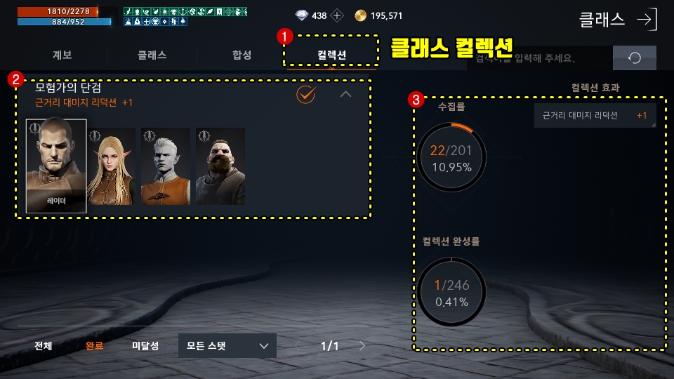 클래스 컬렉션은 따로 등록하는게 아니라 클래스를 뽑거나 획득하면 알아서 컬렉션이 등록됩니다. 가끔 클래스를 뽑거나 획득했을 경우 번쩍번쩍하면서 데미지 +1 , 추가 데미지 +1 이런 메세지를 보셨을겁니다. 컬렉션 등록되서 그런 옵션의 효과를 누릴 수 있다는 말입니다.
