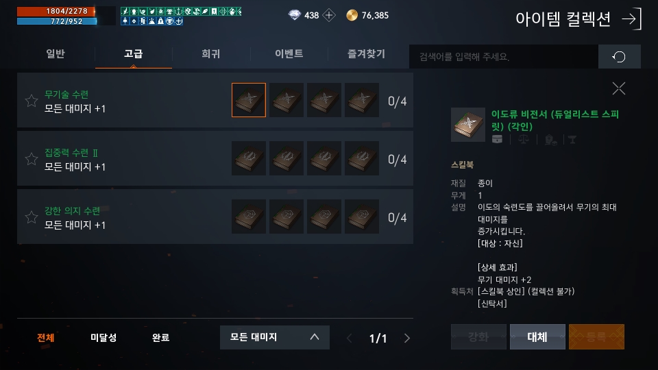 아이템만 컬렉션하는게 아니라 스킬북도 컬렉션으로 등록이 가능합니다. 다만 “마을 상점에서 판매하는 아이템은 등록이 불가능”하니깐 신나게 스킬북이나 무기 방어구 사서 등록을 시도하는 일이 없으면 좋겠습니다.