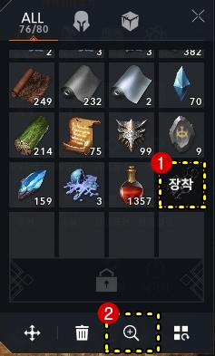 그보다는 자신의 인벤토리에서 "아이템을 길게 누르거"나 선택한 뒤에 하단의 “+” 버튼을 누르면 아이템 상세보기 화면으로 바뀝니다.