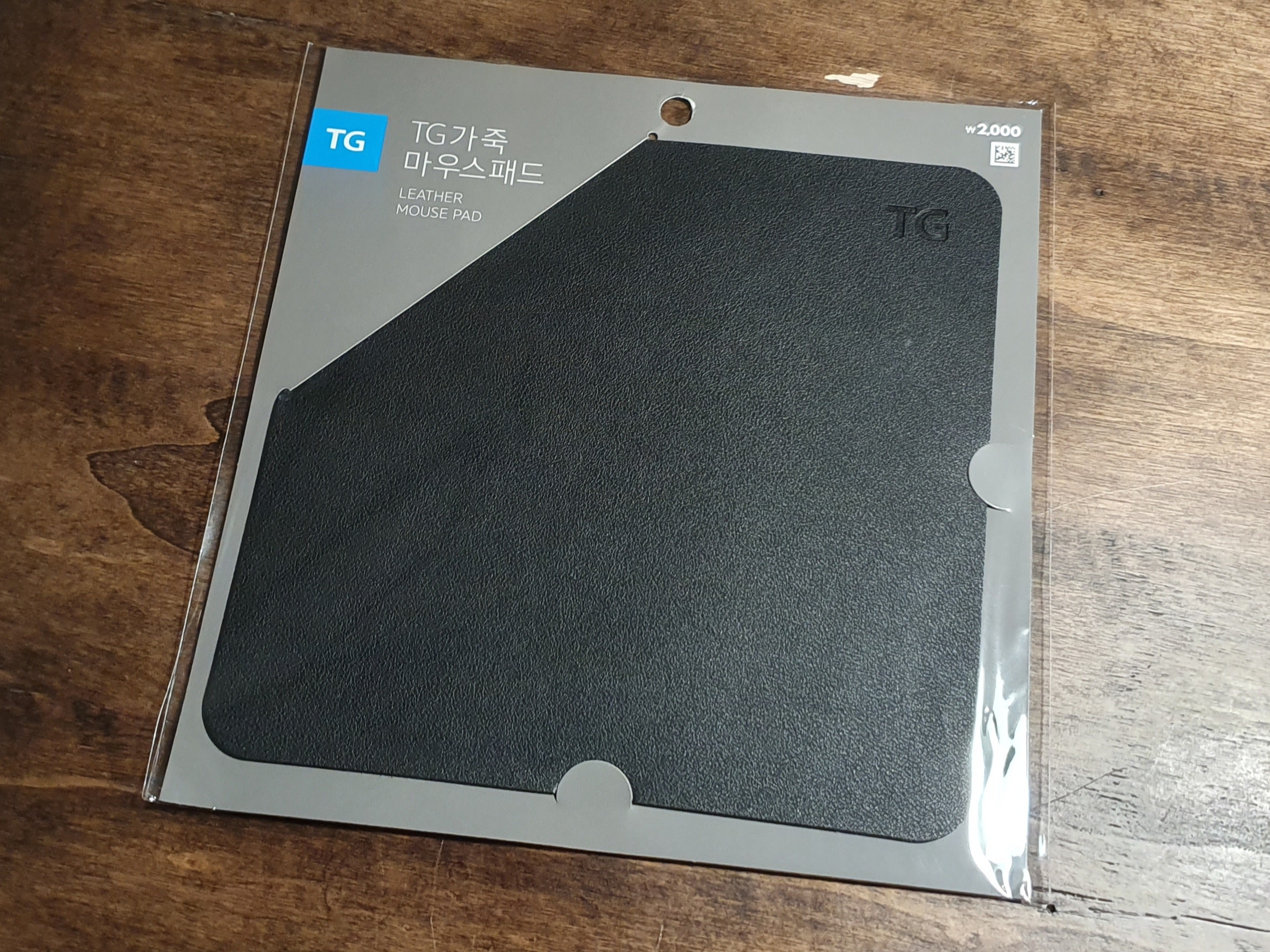 앞서 말했던 이유로 그래픽이나 다른 디자인이 첨가된 제품은 제외하고 TG가죽 마우스 패드가 가장 심플하고 튀는 부분이 없어서 골랐습니다. 가격은 2.000원 같은 크기의 다른 제품들은 1.000원정도인데 이녀석은 두배군요..-_-;; 우측 상단의 영문은 없었으면 더 좋았겠다만...