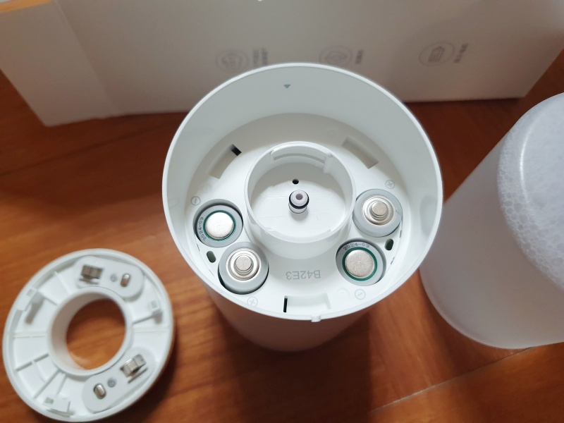 샤오미 손 세정기 본체를 돌려서 케이스를 열면 건전지를 넣을 수 있는 공간이 보입니다. + / - 표시를 잘 보면서 동봉된 건전지 4개를 모두 장착하고 다시 마개를 돌려주면 끝입니다.