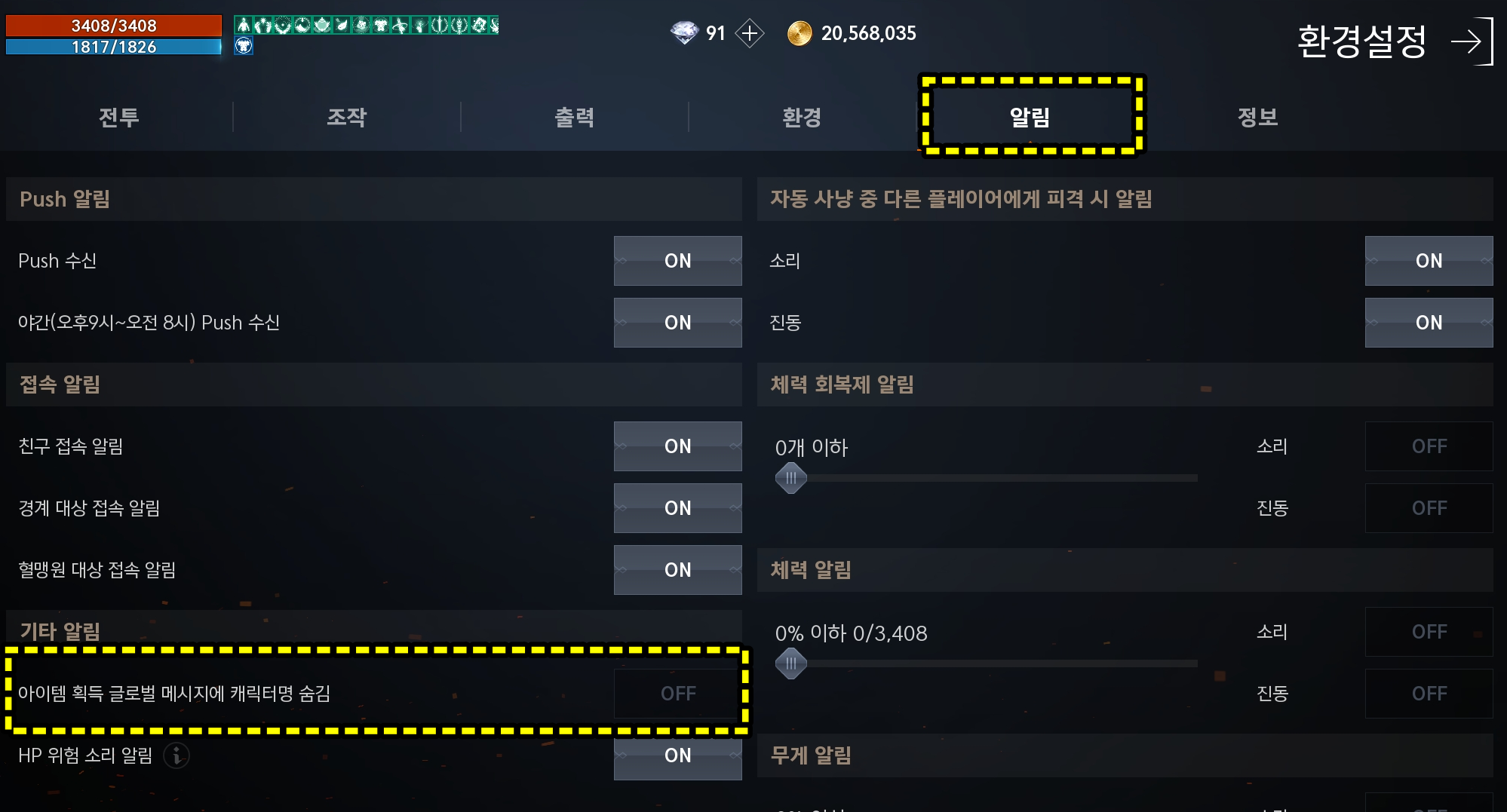 리니지2M의 설정 -> 알림-> 기타알림-> " 아이템 획득 글로벌 메세지에 캐릭터명 숨김" 에서 희귀등급 이상의 아이템을 획득할 시 출력되는 아이디를 비공개 (익명)으로 변경할 수 있습니다. ON / OFF 설정을 하면됩니다.