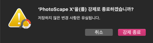 딱히 중요한 파일을 편집하는 단계는 아니라서 저장하지 않은 변경 사항은 유실됩니다라는 경고 메세지가 거슬리지는 않았습니다. 편집이야 다시하면 되니깐 말이죠. 프로그램의 종료가 우선이거든요. 강제 종료 버튼을 눌러서 정상적으로 멈춰버린 프로그램을 종료했습니다.