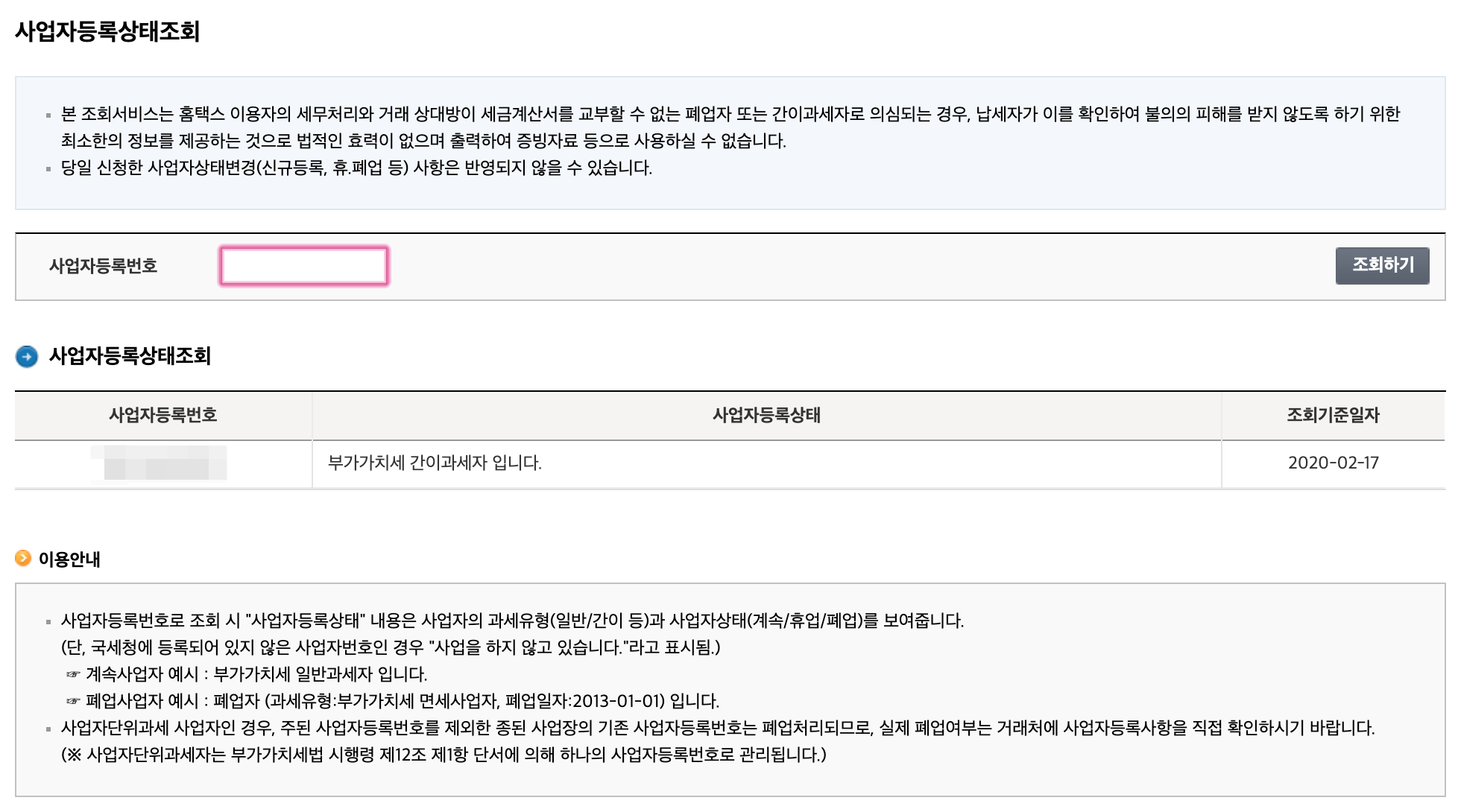 사업자등록상태 조회 : https://www.hometax.go.kr/