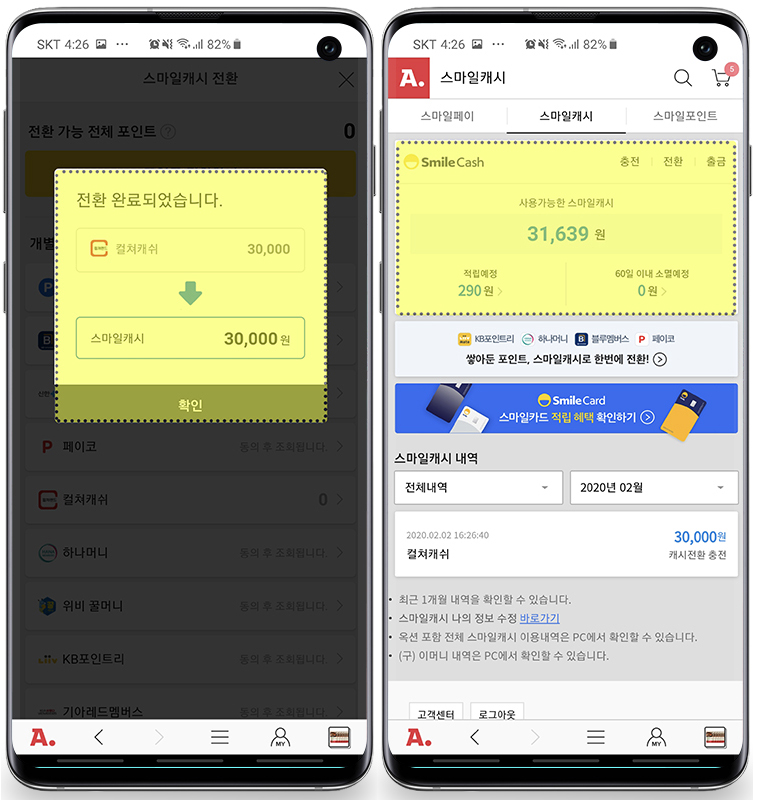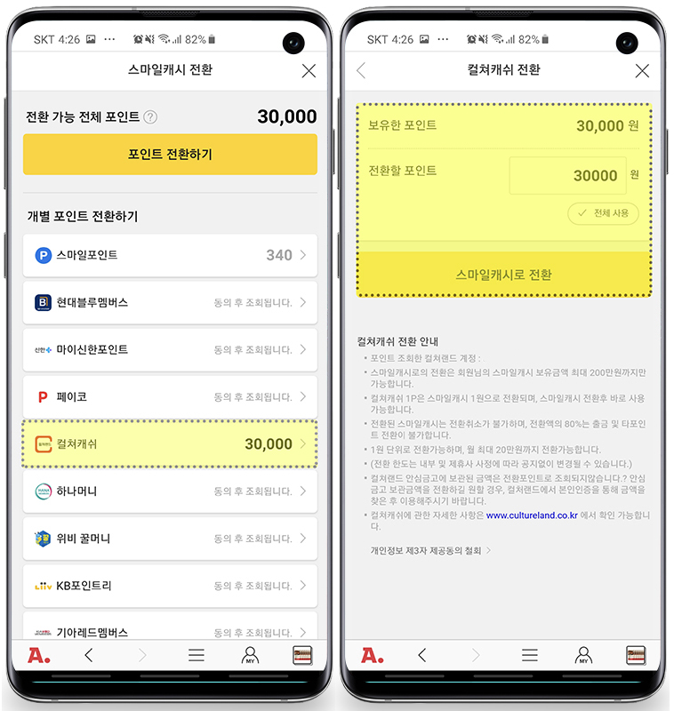 컬쳐랜드 컬쳐캐쉬로 옥션 스마일캐시 전환하는 방법