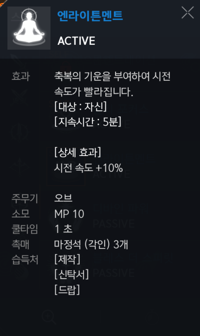 엔라이튼멘트 : 시전속도 올려주는 스킬 ▶ 필수 ◀