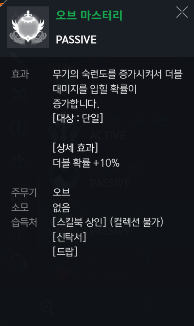 오브 마스터리 : (패시브) 더블 확률 +10 % ▶ 필수◀