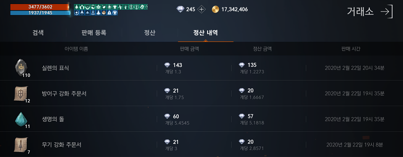 실렌의 표식, 생명의 돌, 무기 강화 주문서, 방어구 강화 주문서 요거 다 팔았더니 240다야 정도 나왔습니다. 사냥으로는 10다이아도 벌기 힘들었는데 ..... 자리체 돌면서 그래도 조금은 모았네요. 다만 수동으로 소환된 장소로 이동하고 복불복이라서 오랜시간 이용하지는 못했습니다.