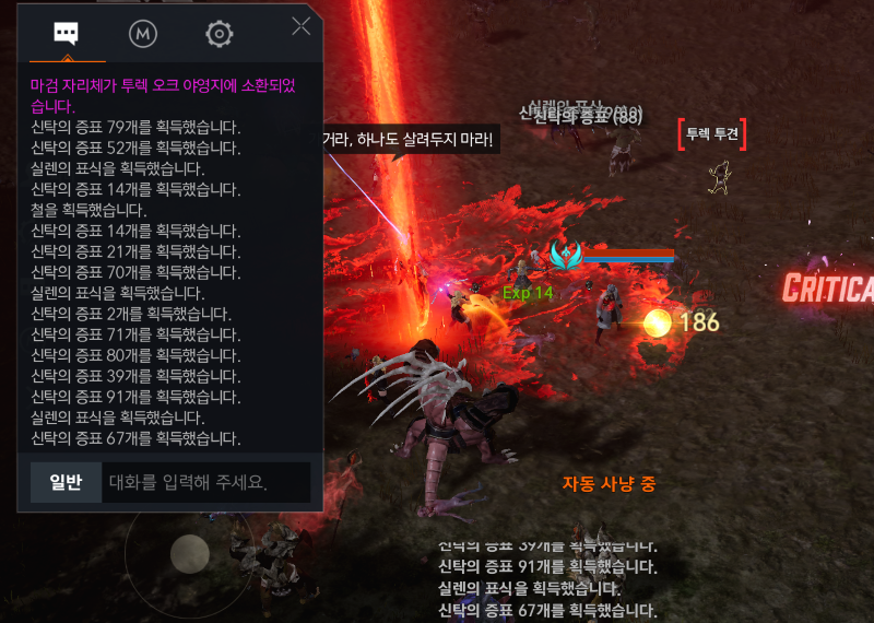 자동사냥 돌리면서 시간나면 자리체 소환됐다는 메세지 보면서 잘 먹지도 못하지만 꾸역꾸역 사냥했습니다. 실렌의 표식100개 정도 모으고 자리체의 파편 40개정도 획득했습니다. 1~2일 정도 자리체 나오면 틈틈히 이동해서 사냥한 결과입니다. 주로 이른 아침에는 사람이 별로 없어서 획득 확률이 올라가고 주말이나 저녁에는 경쟁자가 많아서 힘들더군요.