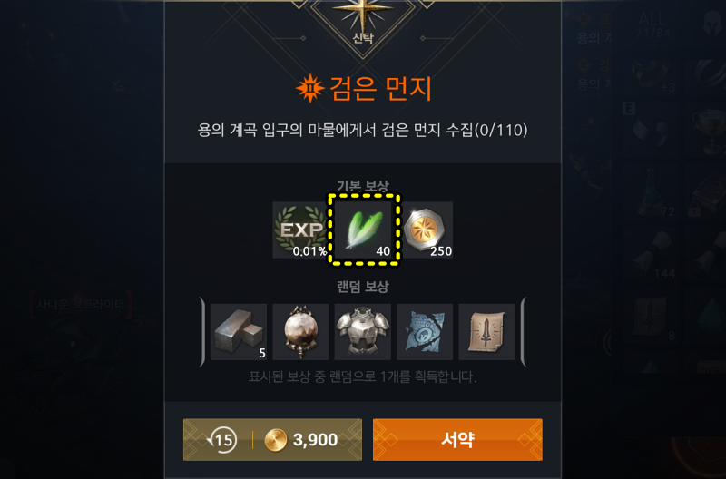 무과금은 시간을 녹이면서 게임을 하는거라 기란의 신탁서나 오렌의 신탁서를 하나씩 사용해서 보상을 받는게 가장 좋은 효율을 보입니다. (여기서 팁은 신탁서의 퀘스트 내용을 리셋하면서 원하는 지역 예를 들어 죽음의 회랑만 골라서 퀘스트를 수락하면 한번에 최대한 많은 신탁서를 클리어할 수 있습니다.)