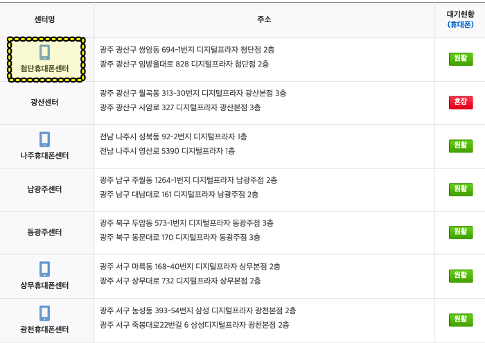 주소는 디지털프라자 2층이고 서비스 가능시간은 앞에 작성했던 내용처럼 평일 09시부터 19시까지 토요일은 09시부터 13시까지입니다. 센터의 대기 현황도 표시됩니다. 지금은 원활하니깐 방문하기는 좋겠죠.