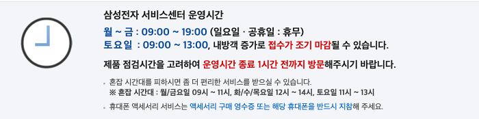삼성 서비스 센터 영엽시간