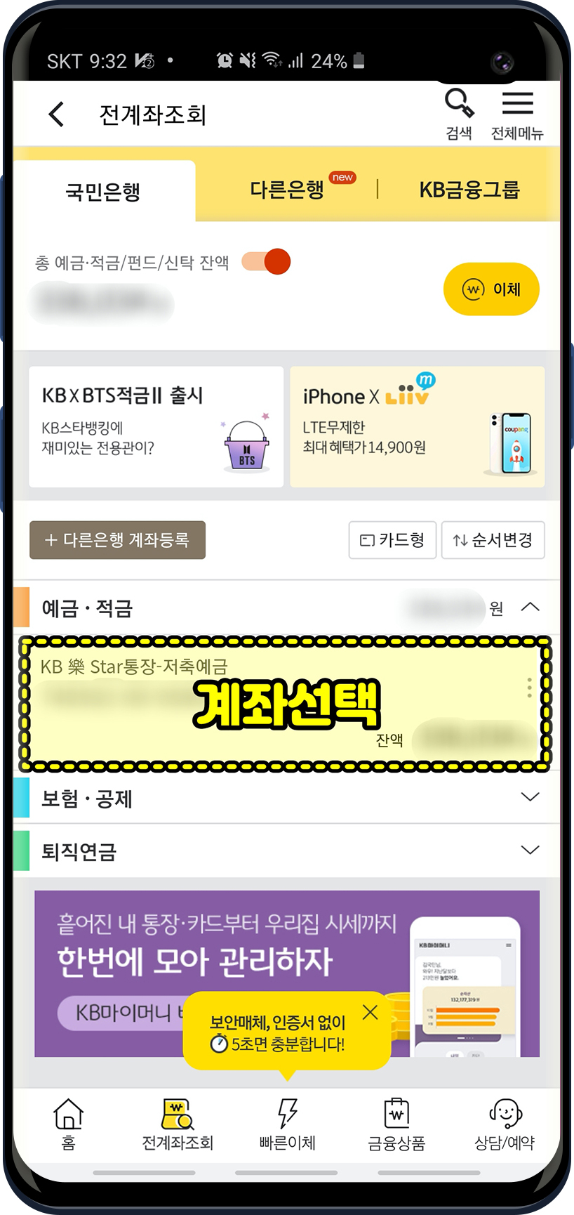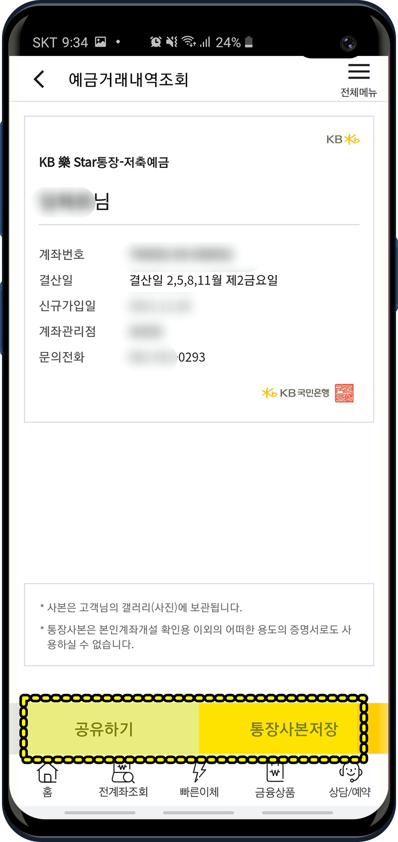 KB 국민은행 통장사본 모바일 어플로 출력하는 방법