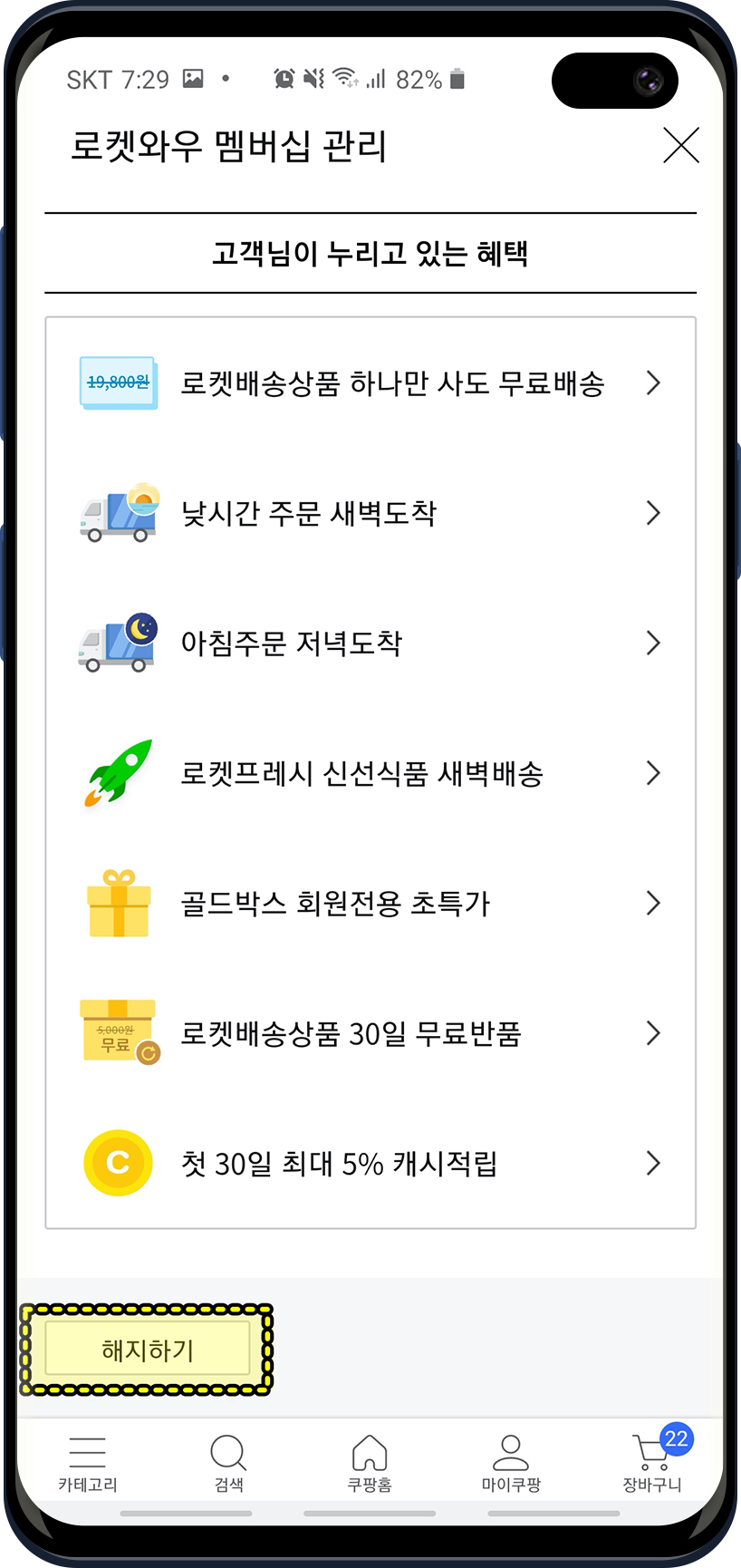 쿠팡 로켓와우 멤버십 해지하는 방법