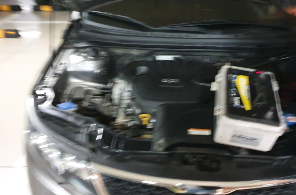 사진이 많이 흔들렸네요. 본넷 열어서 배터리 점프하면서 시동을 걸어봅니다. 정상적으로 시동이 걸리고 30분정도 시동을 건 상태로 있거나 아니면 주행을 하라고 하시네요. 배터리가 어느정도 충전을 해야하니까요.