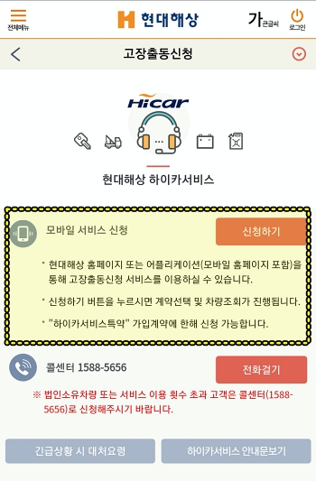 현대해상 하이카 긴급출동 배터리 충전 서비스 이용 방법