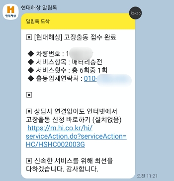 현대해상 하이카 고장출동 배터리 충전 서비스 이용 후기
