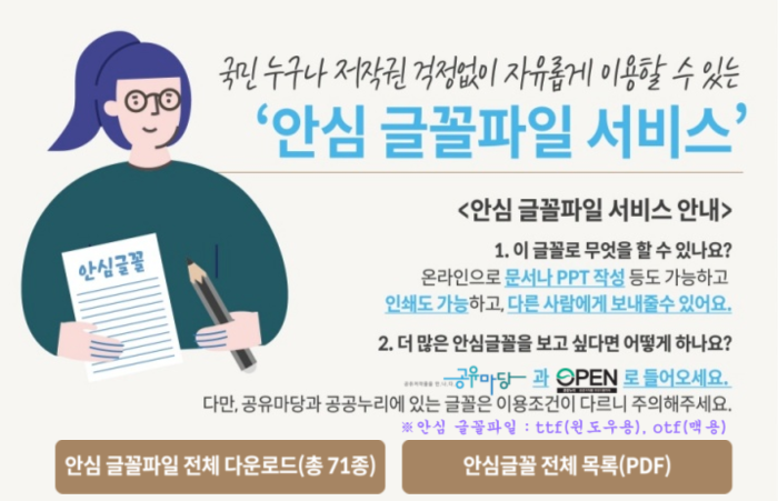 안심글꼴 71종 서비스 페이지 : https://gongu.copyright.or.kr/freeFontEvent.html