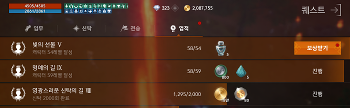 무과금은 이런 보스레이드 귀찮아도 필수로 해야합니다. 귀찮음 = 돈 이니까요. 보상으로는 1마리당 잡을때마다 반짝이는 은총 꾸러미 1개 /용맹의 공훈 상자를 주는데 명예훈장 모으기도 좋고 "은총의 성물"을 주니깐 무과금 유저에게는 필수입니다. 레벨이 오르면 이제 아인이 많이 부족하거든요. 마리당 2개씩 주니깐 총 4마리 다 잡으면 아인하사드 800정도 충전이 가능합니다.