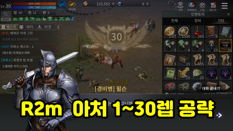 R2M 무과금 아처 육성 공략 - 1~30레벨까지