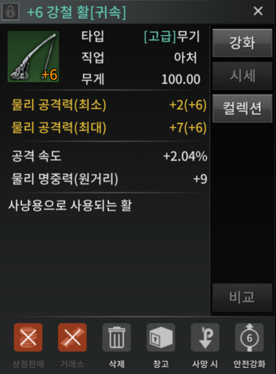 그리고 그때 아처는 "강철 활" 나이트는 "제노 사이트 커터" 고급 등급 무기를 퀘스트 보상으로 받습니다. 마을의 "이벤트상인 레이첼"에게 "무기 강화 주문서"를 5장 구매하고 부족하면 캐시 상점의 "이벤트&강화"에서 주문서를 구입해서 "+6 무기"를 만들어줍니다. 이제 무기는 끗!