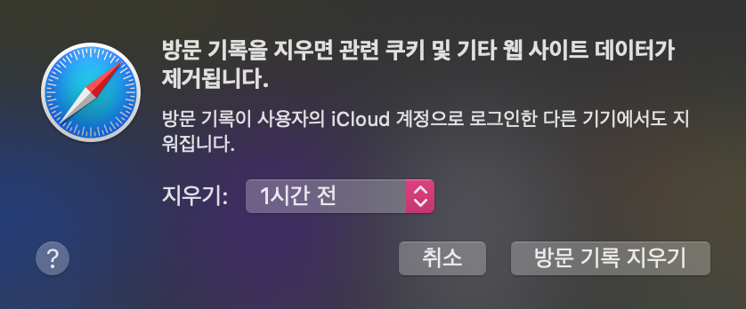 다만 주의할 내용으로는 방문 기록을 지우면 관련 쿠기 및 기타 웹사이트 데이터도 함께 제거됩니다. 그리고 연결된 아이클라우드 계정이 있으면 아이패드나 아이폰에서도 방문기록이 함께 삭제됩니다.