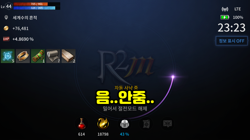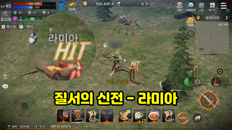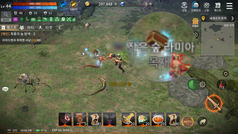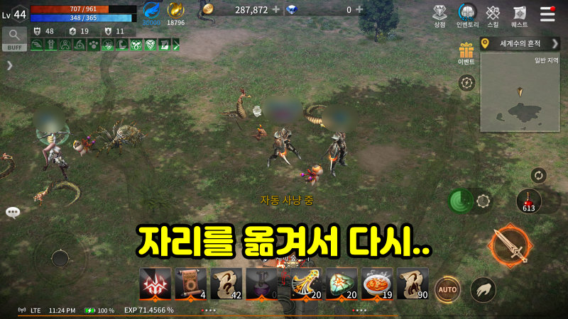 뱀 가죽 부츠를 획득하기 위해서 작은 숲 라미아에 자동 사냥을 돌려놓았습니다.