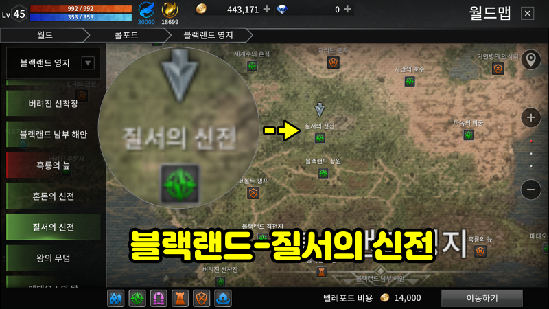 또 "블랙랜드-> 질서의 신전"에서 "라미아"가 뱀 가죽 부츠를 드랍한다는 소식을 듣고 우선 캐릭터를 그쪽 맵으로 이동했습니다.
