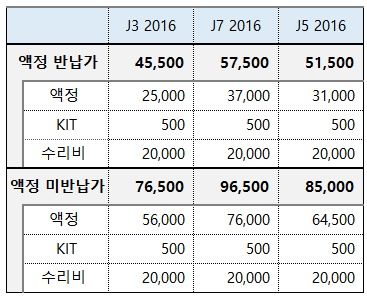 갤럭시 J3 2016 / J7 2016 / J5 2016 / J7 / J5 액정 예상 수리비용