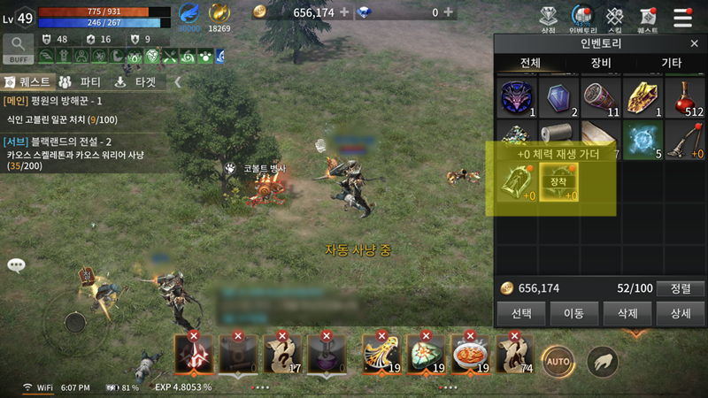 50까지는 뭐 딱히 공략이 없어요. 지금 49레벨 40%정도인데 이 글을 쓰는 시간에도 아이폰에서는 열심히 사냥으로 경험치를 올리고 있습니다. 아마 내일 스페셜 던전 각 2시간씩 플레이하면 50레벨에 도달할 예정입니다.