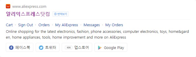 네이버나 다음 포털에서 "알리익스프레스" 또는 알리익스프레스닷컴을 검색합니다. 워낙 유명하고 큰 쇼핑몰이라서 맨 위 상단에 나오는 결과를 클릭합니다