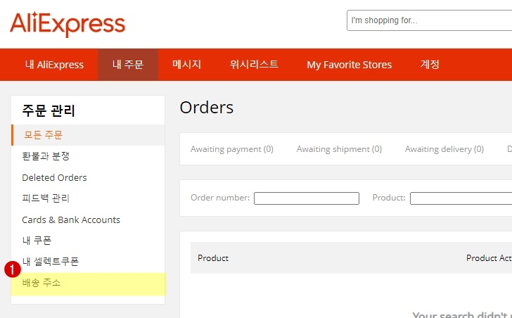 좌측의 "주문 관리"에서 "배송 주소" 선택합니다. 국내 쇼핑몰과 크게 다르지 않습니다. 판매자와 소통하는 방식이나 배송 기간등의 문제들이 있긴 하지만 사람 사는 것은 대부분 비슷하죠 뭐.