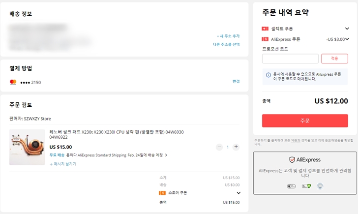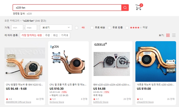 국내에서는 구하기 어려운 물건이 중국의 쇼핑몰인 "알리익스프레스"에서는 나름 쉽게 구입이 가능하더군요. 앞서 구입한 X220의 방열판과 쿨링팬을 알리에서 구매하려고 가입해서 한번 주문