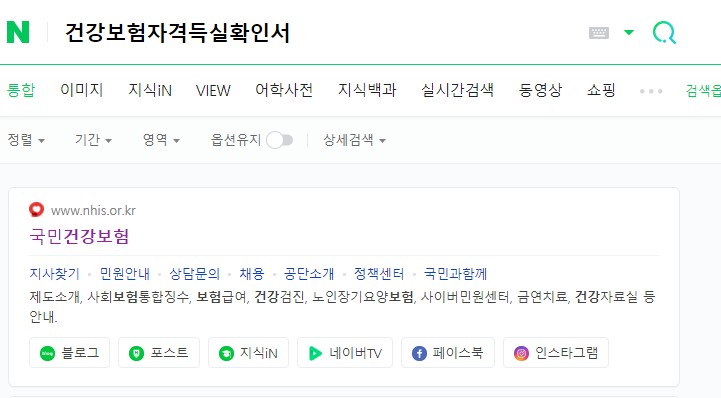 네이버나 다음 포털에서 "국민건강보험" 또는 "건강보험자격득실확인서" 요렇게 입력하면 국민건강보험 웹사이트가 나옵니다. 해당 사이트에서 건강보험자격득실확인서발급이가능합니다.