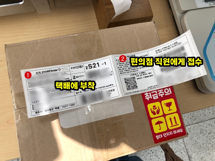 처음에 네이버로 예약해서 결제까지 끝난 상태라서 붙이고 끝나는 줄 알았는데 직원이 포스기에서 바코드 인식하고 접수를 해야지 정상정으로 끝납니다. 그리고 택배 놓는 곳에다가 올려두면 끝!