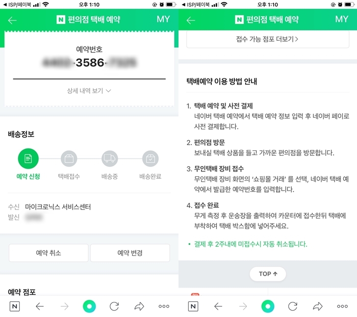 편의점에 방문해서 접수하는 방법이 있는데 해당 방법은 택배 기계 앞에서 정보를 입력하고 귀찮은 부분이 있습니다. 네이버에서 간편하게 예약이 가능하니깐 스마트폰으로 편리하게 접수를 해봤습니다.