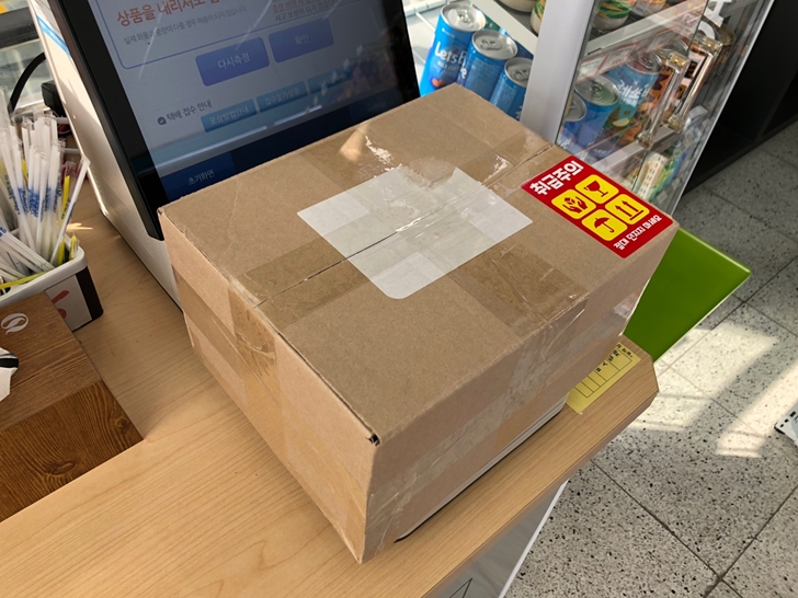 네이버에서 택배 예약 접수와 결제를 한 뒤에 2주 이내에 지정한 편의점 지점에서 택배를 접수해야합니다. 저는 외출하는 길에 포장한 택배를 들고 편의점에 방문했습니다.