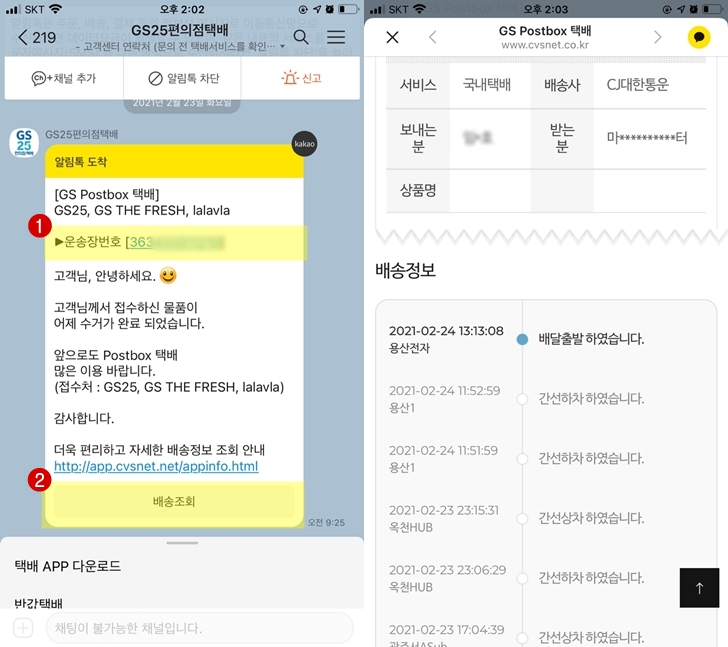네이버 택배예약 GS 편의점 택배 배송 조회 방법