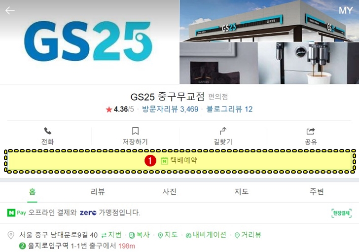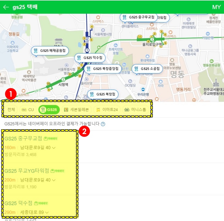 네이버 지도에서 지정한 편의점이 맞는지 잘 확인하시구요. (편의점마다 택배나 이용 가능한 서비스들이 다릅니다.)