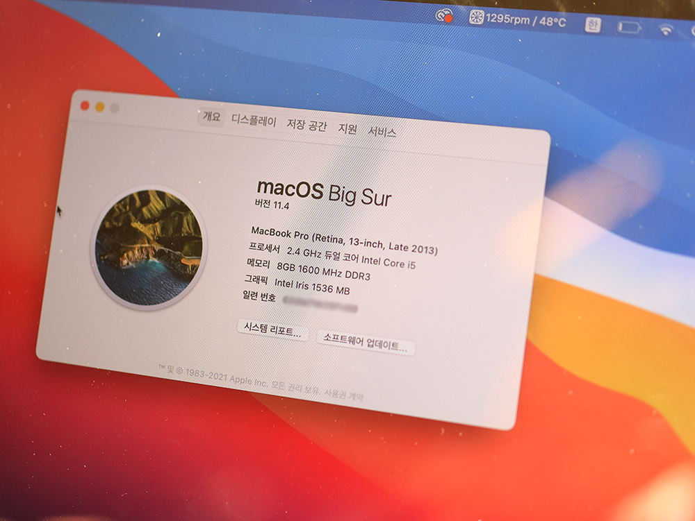 MacBook Pro (Retina, 13-inch, Late 2013) 모델로 딱 날짜만 봐도 8년이 지난 모델입니다. 당시 레티나 디스플레이로 기존의 맥북과 차별점이 있기에 중고가격 방어를 잘 하던 녀석인데 이제는 노인학대 수준이라 전문적인 프로그램들은 많이 버벅이는 상황입니다. (거기에 듀얼코어)
