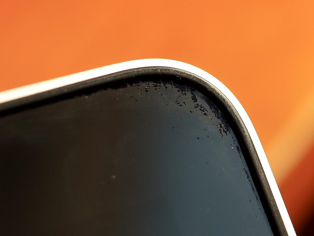 액정의 하단에도 역시 스테인게이트의 흔적이 처참합니다..만 물티슈 이용해서 측면까지 벅벅 닦아서 없애야죠. 코팅을 벗겨내면 단점이 액정의 반사가 심합니다. 글을 쓰는 지금도 액정이 약간 거울같은 느낌으로 보이는데 이는 저반사 필름을 붙이는 방법으로 해결이 가능합니다 (하지만 돈 쓰기 아까워서 필름 안붙히고 사용할듯)
