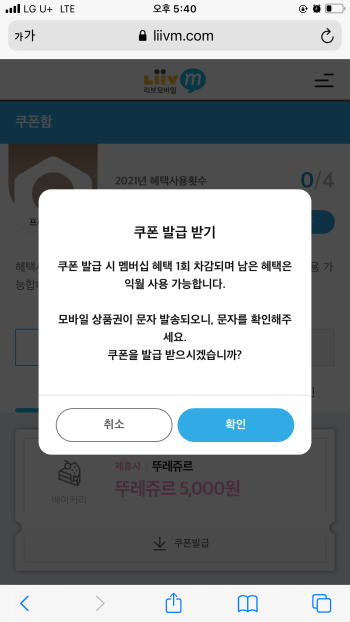 리브엠 모바일 멤버십 쿠폰 사용 방법