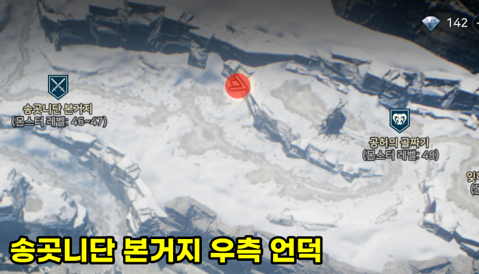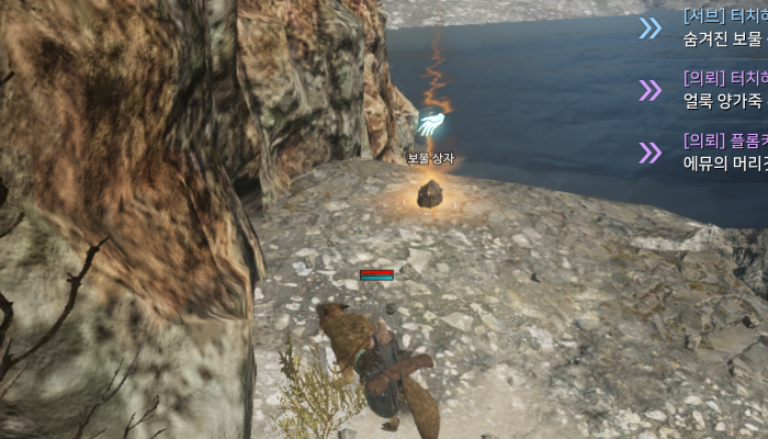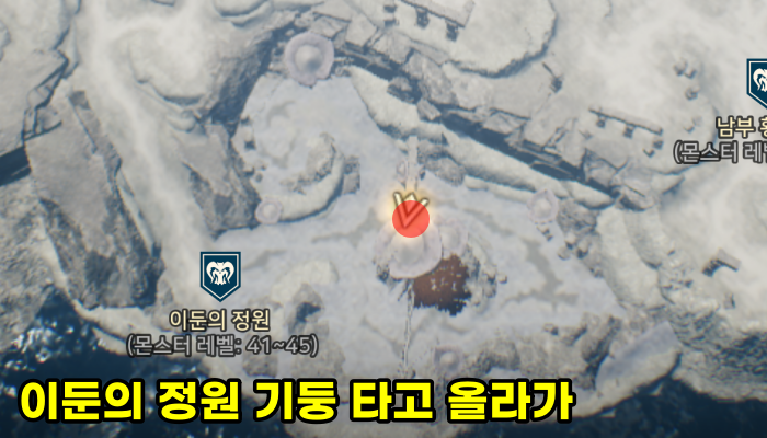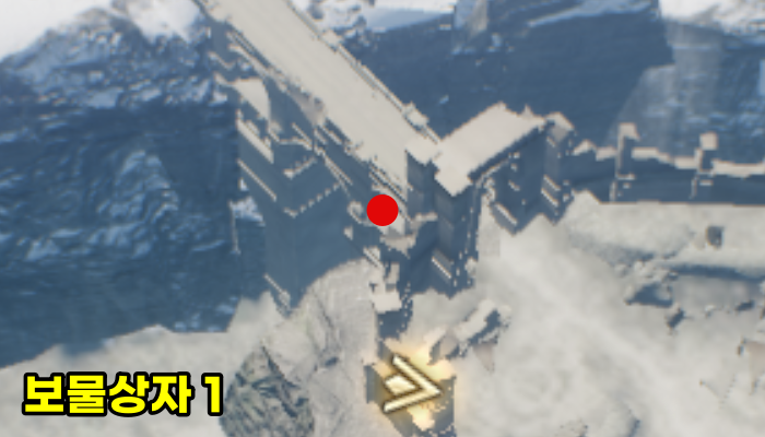 티르의 서리 요새에서 11시 방향으로 쭉 이동하다가 만나는 벽을 타고 올라가면 역시나 보물 상자가 반겨줍니다.
